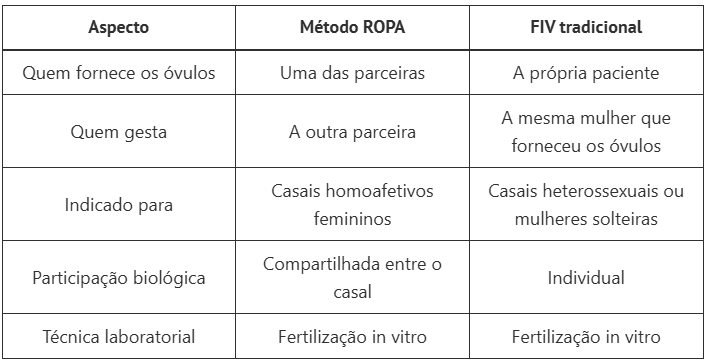 Nem todo casal feminino precisa, obrigatoriamente, realizar o método ROPA. A escolha depende do desejo de participação biológica de ambas, bem como das condições de saúde de cada uma.